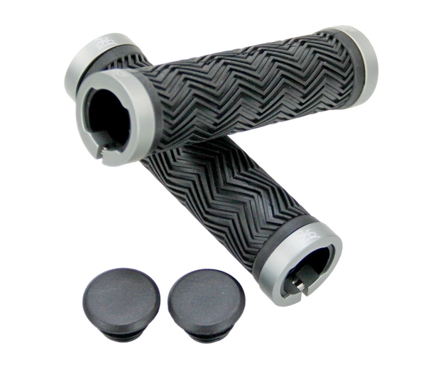Chwyty kierownicy w kolorze czarnym, wykonane z antypoślizgowej, lekkiej gumy, dzięki której dłonie prawidłowo układają się na kierownicy, co pozwala na pewny chwyt podczas jazdy. Montowane za pomocą 2 pierścieni na kierownicę o zewnętrznej średnicy 22,2mm. W zestawie z korkami z tworzyw sztucznych.