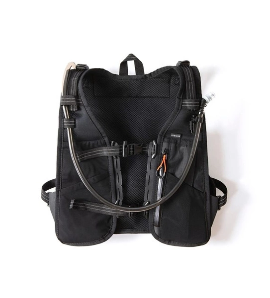 - kamizelka wyposażona jest w bukłak o pojemności 2 litrów, a rozciągliwa wewnętrzną podszewkę zapewnia jego doskonałe dopasowanie, eliminując dyskomfort podczas dłuższej jazdy. Z tyłu znajdują się dwie kieszenie z elastycznej siatki, które z łatwością pomieszczą dwie dodatkowe butelki oraz pętle z taśmy do mocowania innych przedmiotów, np. trackerów wyścigowych, za pomocy karabińczyków. Z przodu też są dwie łatwo dostępne kieszenie z elastycznej siatki, idealne do przenoszenia butelki z wodą i przekąsek. Jest też zamykana na suwak, rozciągliwa kieszeń, z klipsem na klucze wewnątrz, zapewniająca bezpieczne przechowanie i szybki dostęp do cennych przedmiotów. System prowadzenia rurki od bukłaka na obu ramionach pozwalają użytkownikom wybrać, którędy chcą ją poprowadzić, a regulowany magnetyczny klips gdzie przypinać ustnik, gdy nie jest używany