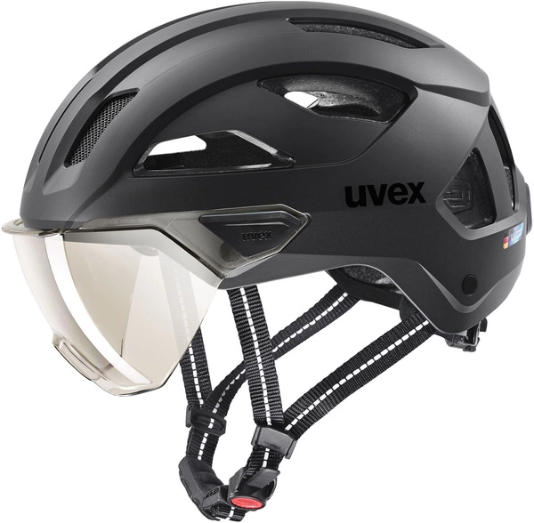 Bezpieczny. Widoczny. Praktyczny. Trudno znaleźć lepszy sposób na ochronę głowy i oczu niż Uvex Stride Visor. Ten kask z szybą, idealny do codziennych dojazdów i jazdy po mieście, to znacznie więcej niż modny dodatek do elektrycznego roweru czy stylowego roweru miejskiego. Jego konstrukcja typu hardshell, z powłoką zewnętrzną wykonaną z poliwęglanu i lekką skorupą EPS, sprawia, że jest wyjątkowo odporny na uderzenia. Lekko przyciemniana, odporna na zarysowania szyba zapewnia najszersze możliwe pole widzenia – co ma kluczowe znaczenie podczas poruszania się w ruchu miejskim. Z kaskiem Uvex Stride Visor można również nosić na okulary korekcyjne. Nowoczesne mocowanie pozwala łatwo wymienić soczewkę na ciemniejszą lub przezroczystą. Wbudowana lampka LED z tyłu zwiększa widoczność tego kasku w ciemności. Kolejne atuty to wygodna klamra Uvex Monomatic, którą można obsługiwać jedną ręką, oraz kanał dla lekkiego zabezpieczenia Hiplok Z LOK.