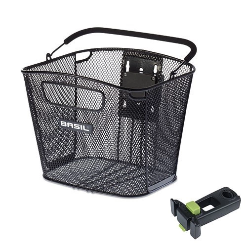 Kosz na kierownicę BASIL BOLD KF+AHEAD-STEMHOLDER KF, KF System (ze wspornikiem), mocowanie przenośne, stalowy czarny (DWZ)